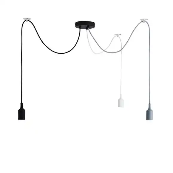 This fun Monochrome Flex 3 Light Cluster Ceiling Fitting has a simple yet contemporary design that will complement an array of home decors beautifully. Featuring a black base with three height adjustable monochrome silicone rubber flex, perfect for adding a unique touch to your kids room. This piece is dimmable compatible and matching family items are available, helping to coordinate your home to create your desired look.