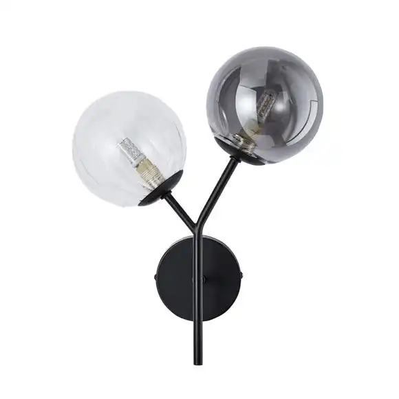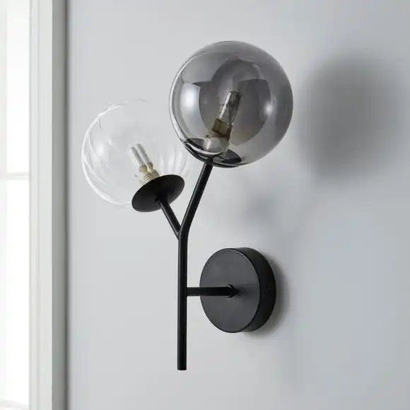 The Nila wall light would be perfect for adding a luxurious touch to your home. This wall light features a clear and smoke round glass shade, finished with a painted black metal base and frame. This gorgeous wall light will fit perfectly with an array of home styles, you can also pair it with other pieces from the Nila range for a coordinated look.