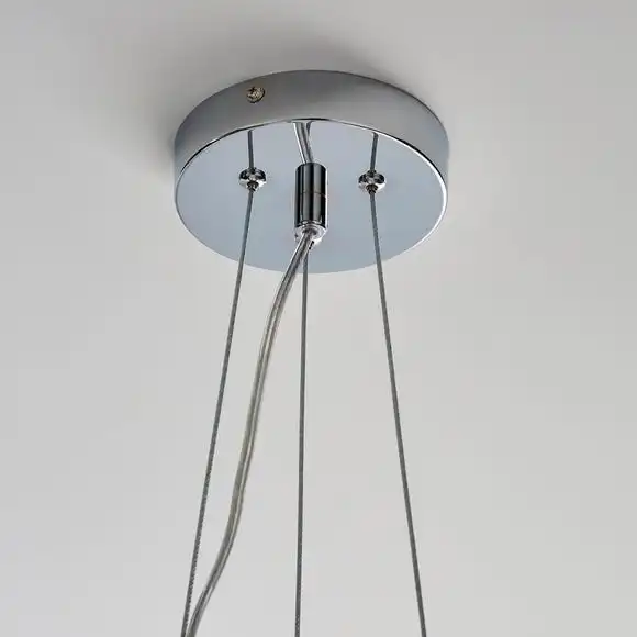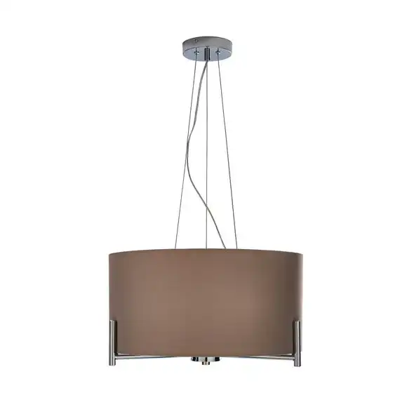 This classic grey ceiling fitting has a fabric shade with chrome tripod exposed frame. This light is adjustable in height and is compatible with a dimmer switch and bulbs.