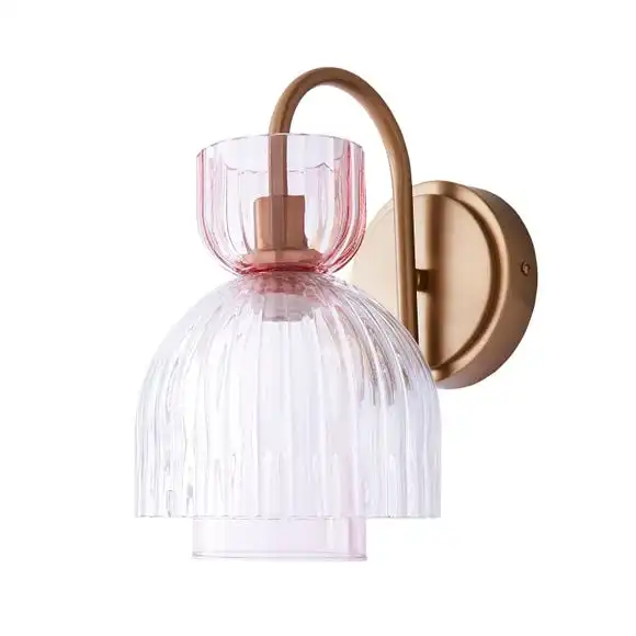 The Ora wall light would be perfect for adding a feminine touch to your home. Featuring a gorgeous fluted transparent pink glass shade, combined with a pink ribbed glass shade. The Ora is complete with a beautiful champagne brass metal base. Coordinate your home with matching family items.