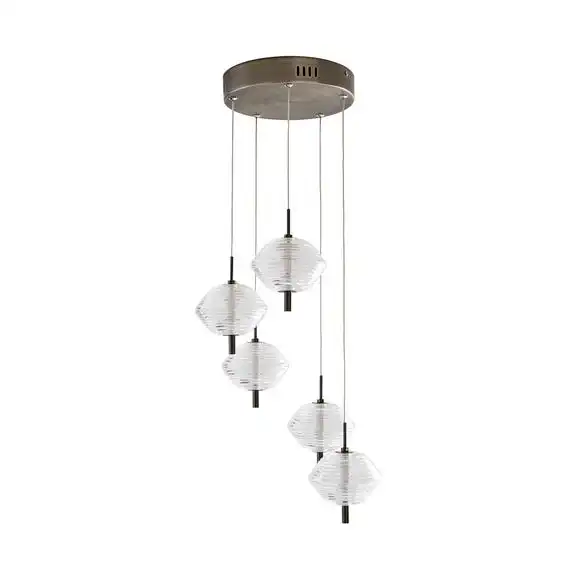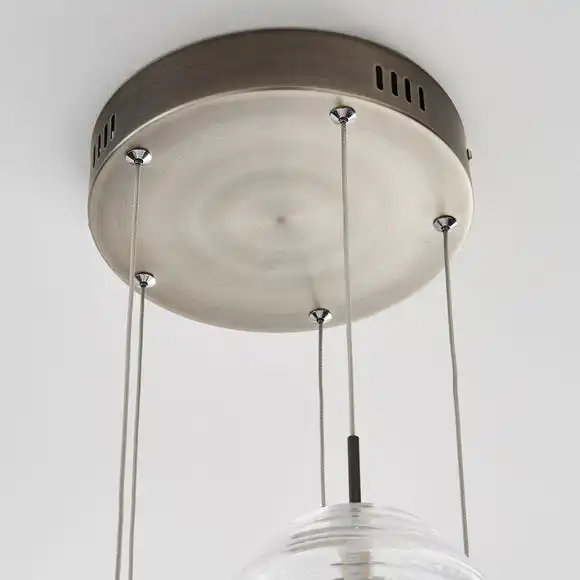 The Orb LED CLuster Fitting is perfect for adding a modern, industrial chic styling to your home. This stunning light fitting features brushed dark nickel finished details, as well as integrated LED lights and textured ribbed glass shades to create a stylish look that would enhance any space.