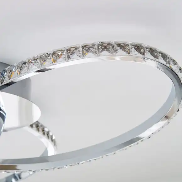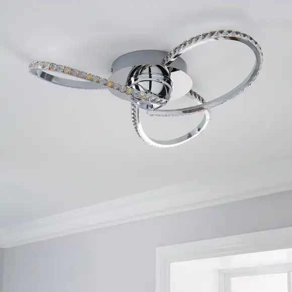 With its contemporary infinity design, glass jewel-encrusted metal arms and stunning chrome finish, the Oria light fitting is the perfect piece for bringing a glamorous yet contemporary feel to your home. Please note this piece is not dimmable compatible.
