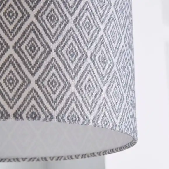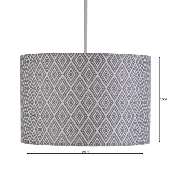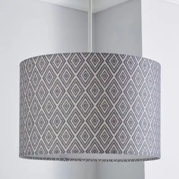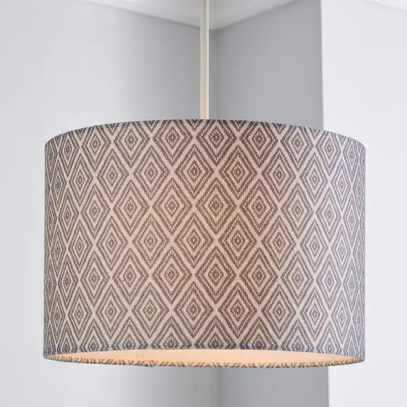 This shade uses textured faux linen fabric in a grey geometric pattern, that matches our Curtain and Bedding ranges. Suitable for use as either a pendant or a table lamp shade.