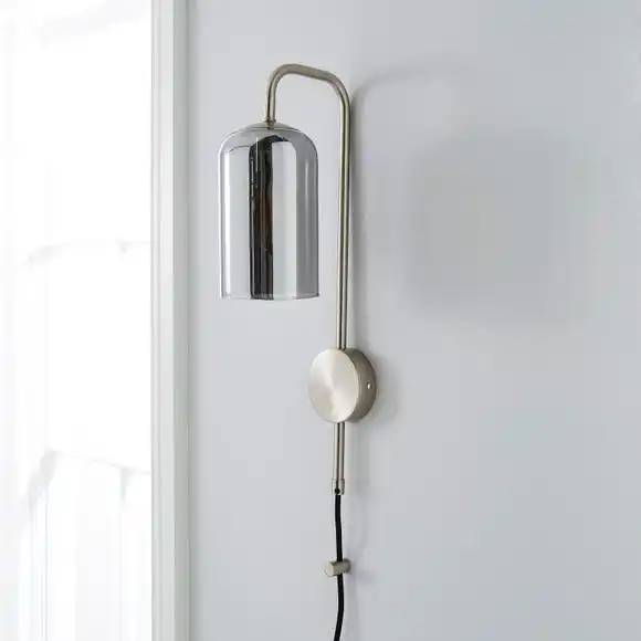 Perfect adding a convenient lighting option to your bedside or home office space, Palazzo easy fit plug in wall light the for offers easy installation and a modern decortaive style, perfect for any home. This stunning wall light features a satin nickel finish, paired with a chic smoked glass shade and a black fabric flex cable for a contemporary look.