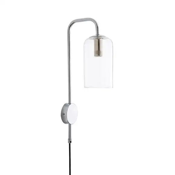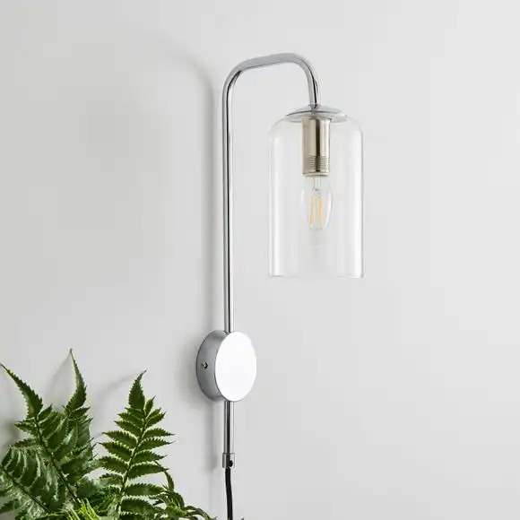The Palazzo Wall Light is perfect for adding a modern, decorative touch to any space. This stunning wall light features a beautiful chrome finish, a chic clear glass shade paired with a curved stem. Complete with a complementing in-line switch, plug in black fabric cable. This table lamp will make a timeless addition to any room, with matching family items available to help coordinate your home.