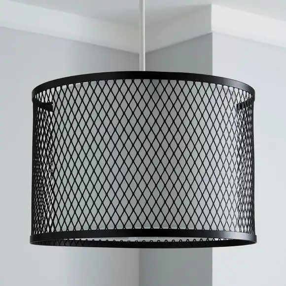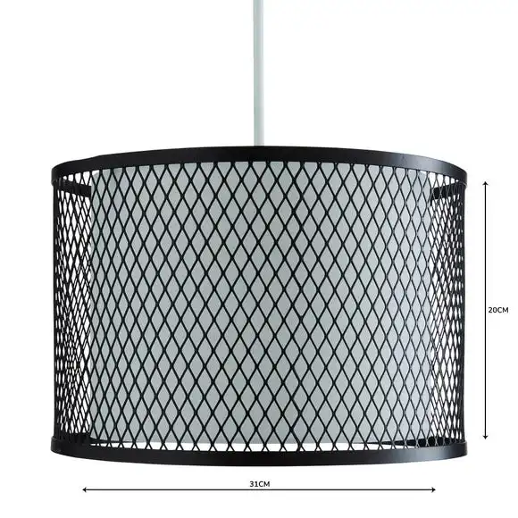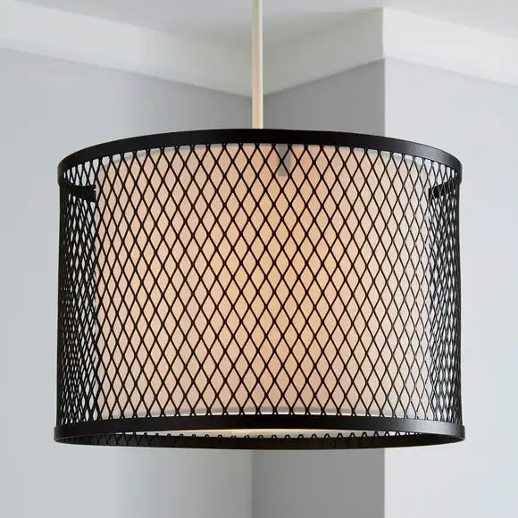 With a matt black mesh metal outer shade, and an inner cotton shade, this modern 2 shade design will be the finishing touch to your room.