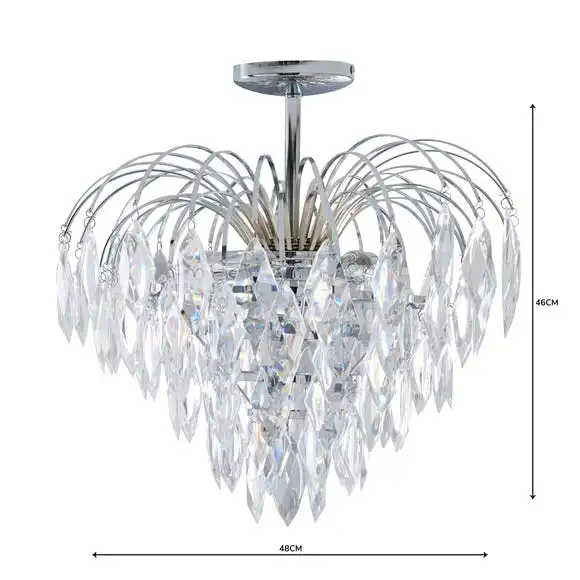 Bring a touch of sophistication to your home with the Parla Pendant Fitting, featuring a delicate cascading droplet shade made from clear acrylic. Complete with a stylish chrome frame, this glamorous, semi-flush light fitting would make a great addition to both modern and traditional decor styles. This piece is dimmable compatible, making it both an attractive and practical product.