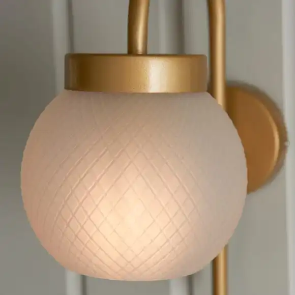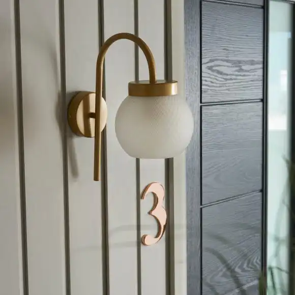 Boasting a beautiful mdoern retro styling, the Ruthy wall light would add a classy touch to any outdoor space. this wall light is finished in a satin gold colour, and paired with a textured, frosted glass shade and features an IP44 rating.