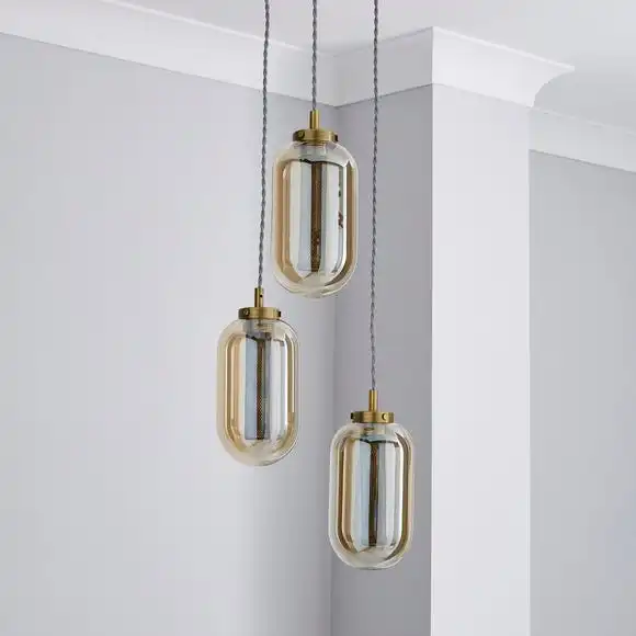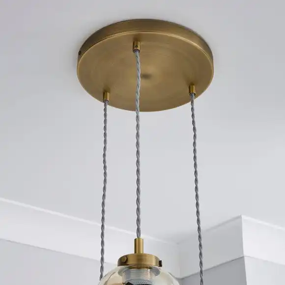 This stunning ceiling fitting with a luxurious design will stand out in any room of the house, with its antique brass colourway that will complement an array of home decors. With an adjustable height, this cluster fitting has an equatorial trend, is dimmable compatible and matching family items are also available.