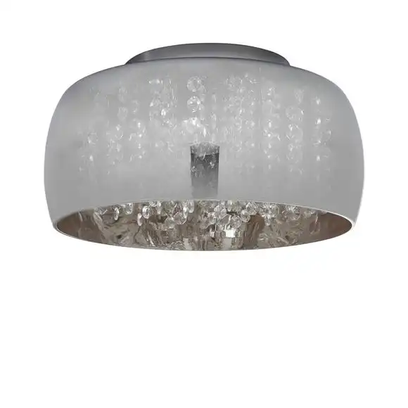 Featuring a smoked finish glass shade the Seychelles ceiling fitting would make a glamorous addition to any room. This flush fitting is designed with a chrome ceiling plate and delicate clear hanging glass droplets, creating a stunning effect.