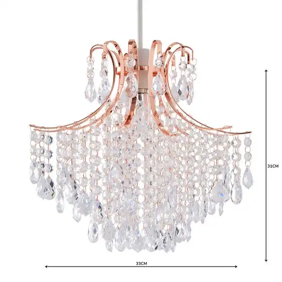This stunning chandelier pendant will add a touch of glamour to your room. With a copper finish, this light is made from durable steel and acrylic string beads.