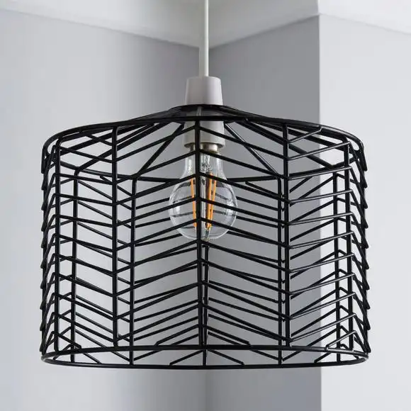 Our Siena easy fit pendant is made from lightweight thin metal, in a luxury matt black finish. This chevron mesh design will be a centre piece in any room.
