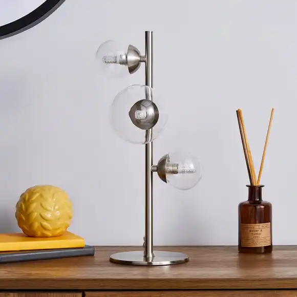 Dunelm Tarsia Glass Table Lamp Satin Nickel