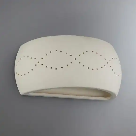 Add a stylish touch to your home with this Thasos wall light. It is designed in an interesting curved shape, detailed patterned front and an unglazed ceramic finish, suitable for a variety of rooms and decor.
