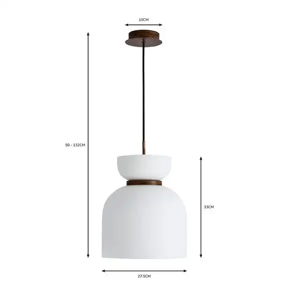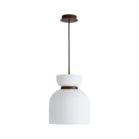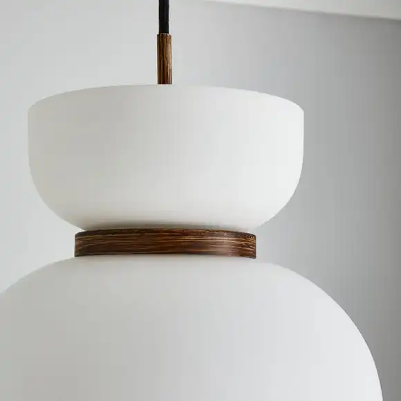 Perfect for adding a modern contemporary feel to your home. The Tien 1 Light Pendant Ceiling Fitting features a stunning matt opal real glass shade with walnut wood effect details in the centre. Complete with a height adjustable black fabric cable and a walnut wood effect base. This piece will look beautiful in any room and you can also coordinate your home with matching family items from the Tien range. Dimmable compatible with a suitable bulb and light switch.