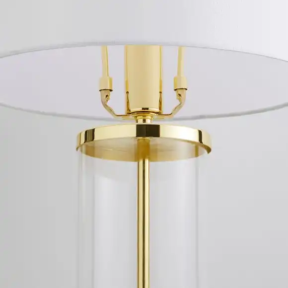 Luxurious and elegant, the Tuscany table lamp offers a stunning timeless design that would give any home a classy, sophisticated look. Complete with a three stage dimmer switch, the Tuscany lamp is designed with a brass and clear glass finished based, perfectly paired with an ivory faux silk drum shade.