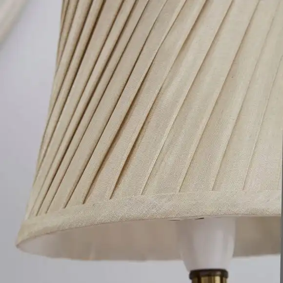 Crafted from a satin fabric with a twisted pleated texture, this neutral coloured champagne lamp shade is available in a range of sizes.