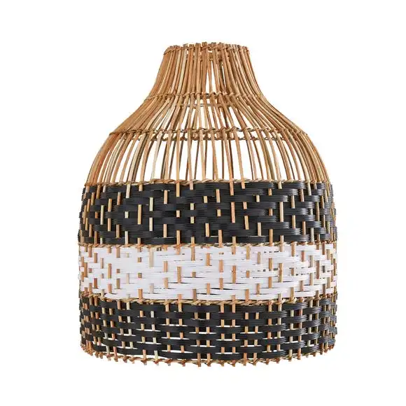 The Yanha Rattan Easy Fit Pendant features a beautiful woven structured design, this easy fit pendant is made from natural rattan with black and white polypropylene woven carefully in between the natural rattan to create a beautiful chevron design. This unique piece will complement a range of décor styles.