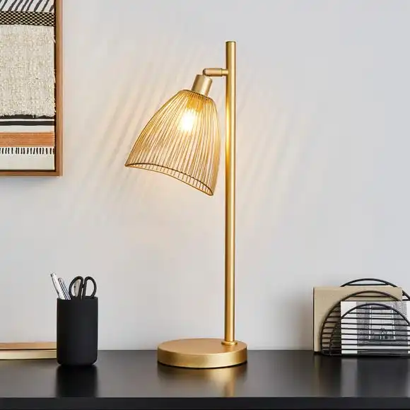 Part of the Elements trend, this stunning Jaula Desk Lamp has a contemporary design that will complement an array of home decors. Featuring a round base and straight stem with an adjustable metal shade, perfect for adding a modern contemporary touch to any room. Matching family items are available, helping to coordinate your home, to create the dream look.
