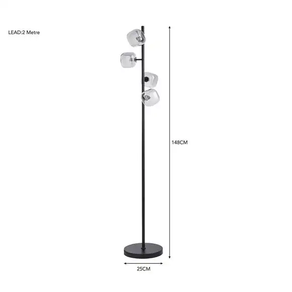 Add a contemporary feel to your home with the Elements Tollose 4 Light Floor Lamp. Beautifully designed with four square shades made from smoke glass with rounded edges. This floor lamp is finished with a painted black metal base and stem. This gorgeous floor lamp will fit perfectly with an array of home styles, pair it with other pieces from the Elements Tollose range to coordinate your home décor.