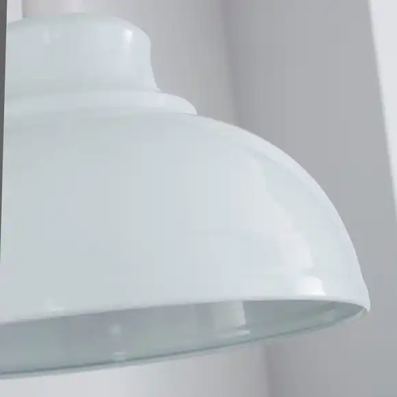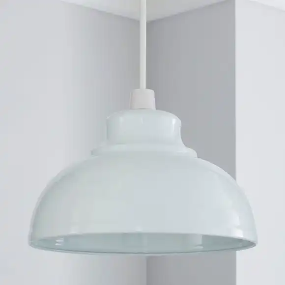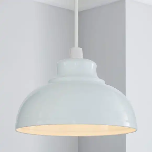 Offering a contemporary dome shape, this pressed metal pendant features a gloss white colourway and is easy to fit for your convenience.