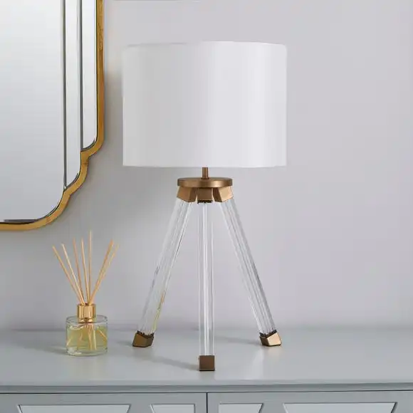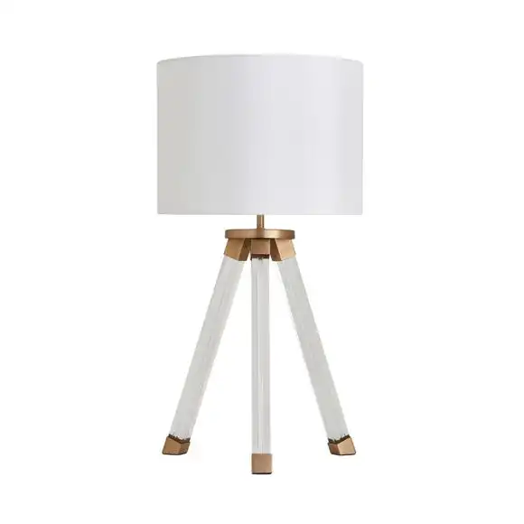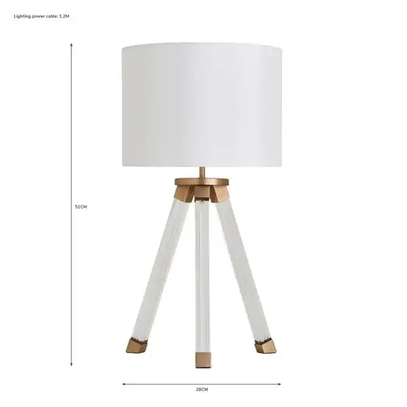 Featuring the Hotel Finley Tripod Table Lamp, beautifully crafted in a clear acrylic base tripod design, metal detailing and a gorgeous white fabric shade. A perfect statement lamp to inject a glamorous and luxurious feel to your home interior, this table lamp will complement an array of home decors. Coordinate your home with matching family items, this piece is available in Gold and Silver.