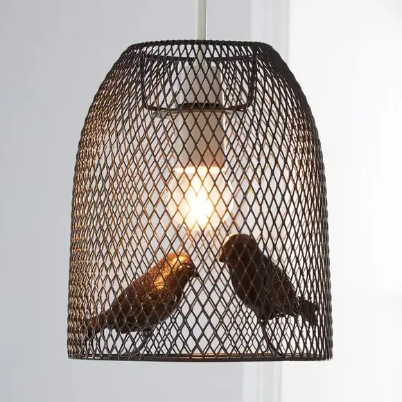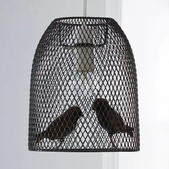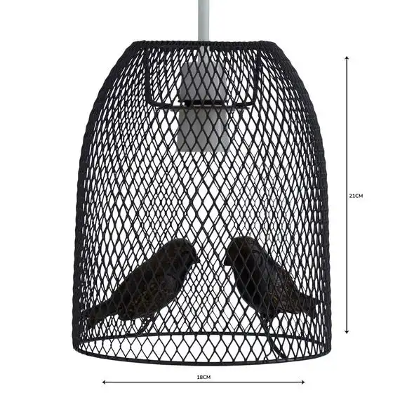 Stylishly fashioned in a dark charcoal grey colour, this stunning pendant features metal mesh design with two intricately crafted birds inside.