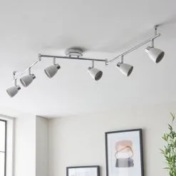 Featuring four spotlights with hammered-effect shades, this ceiling light is finished in a satin nickel effect and is dimmer switch safe.
