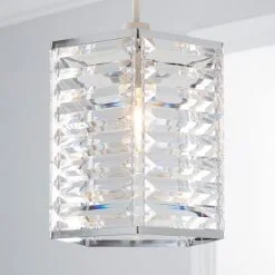 This acrylic pendant features a 5 side prism detail with clear, acrylic prisms with a metal edge finish. The pendant will connect easily to your existing lamp holder and would look perfect in any chosen room of the house.