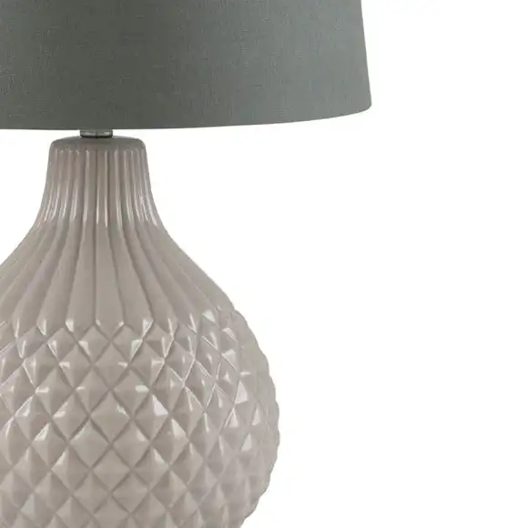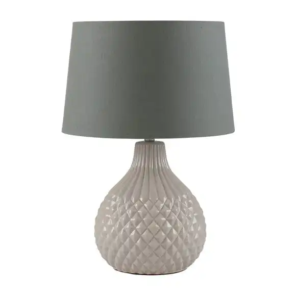 Well isn’t this table lamp just perfect for your home? With an embossed design in a grey colourway, this table lamp i sure to match your home interior. Just buy an ES GLS bulb and get your room lit up in no time.