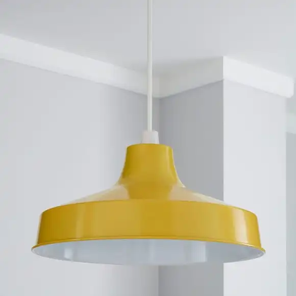 Crafted from durable metal with a strking ochre painted finish, this large industrial galley pendant features a contrasting white gloss painted inner.