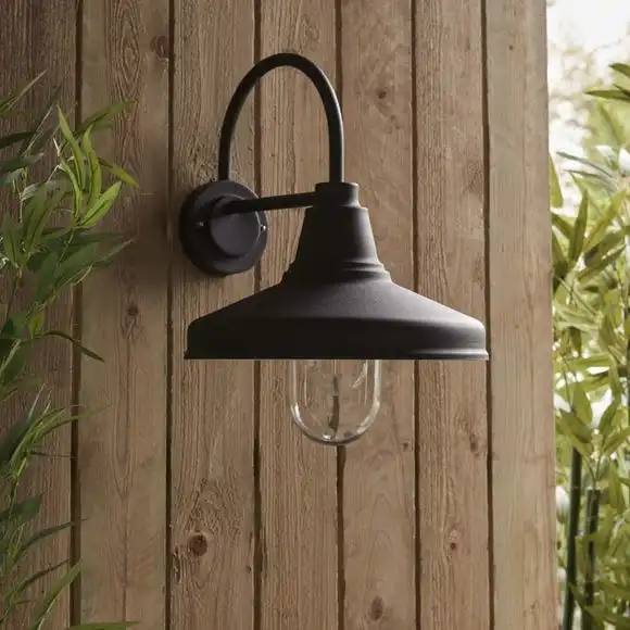 Blending traditional design with a modern mix, the America Outdoor Wall Light brings a classy and contemporary element to your outdoor space. With an IP44 rating, this lighting is suitable for outdoor use, has a clear glass shade for a clean and transparent glow, and textured black finish metalwork for a stylish bold appearance.