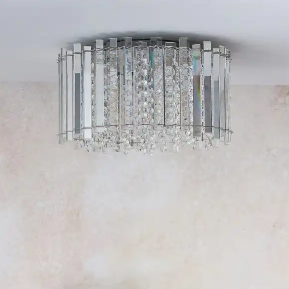 A beautiful high quality light, the Crystal Blessing flush light features a glamorous reflective clear crystal design, filled with faceted glass droplets for an opulent addition to the most loved interiors of your home. Perfect for creating stunning light patterns, this flush fitting comes complete with a chrome finish, and is compatible with dimmer switches.