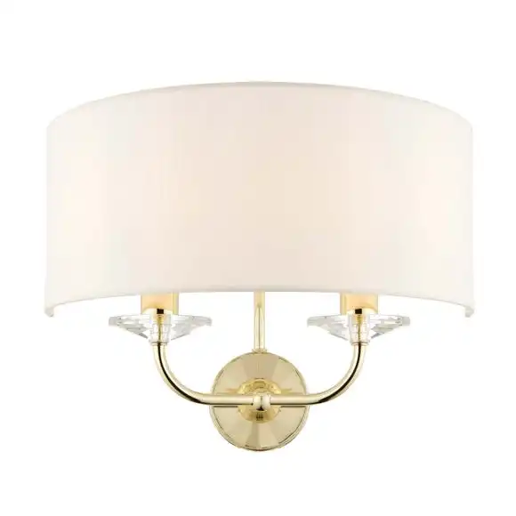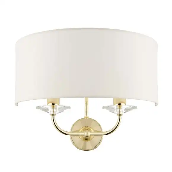 Introduce a modern vintage feel to your home, with the Vogue Katarina Crystal Wall Light completed with crystal glass detailing and a white silk semi circular shade. This beautiful design is practical, dimmable and suitable to use with LED lamps. Matching family items are also available to help coordinate your home.