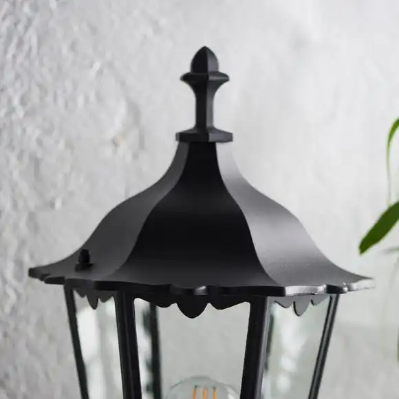 The timeless Trenton outdoor wall light is the perfect way to light up your garden, boasting a traditional design finished in matt black painted die cast aluminium with clear glass panels and stunning decorative details. Combine with a filament LED bulb to create a stylish, traditional look. This light features an IP44 rating making it suitable for a wide range of outdoor spaces and is perfect for combining with other items in the range for a stylish, coordinated look.